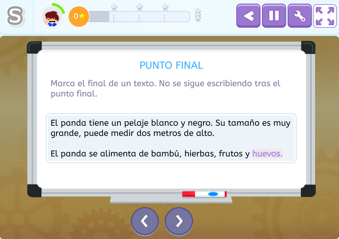 En Smartick Lectura los niños practican los tipos de puntos con actividades adaptadas a su nivel. Aquí tienes algunos ejemplos para que veas cómo trabajamos este contenido.